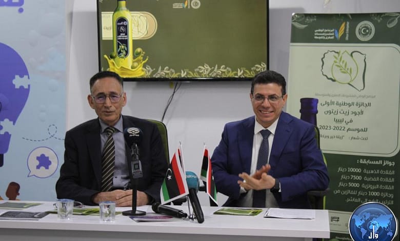 اعلن المدير العام للبرنامج الوطني للمشروعات الصغرى والمتوسطة “عبد الناصر أبو زقية” عن انطلاق مسابقة الجائزة الوطنية الأولى لأجود زيت زيتون في ليبيا لعام 2022 . تحت شعار (زيتنا خير وبركة)، بحضور “محمد الحويج” وزير الاقتصاد والتجارة بحكومة الوحدة الوطنية وعدد من مدراء الإدارات بالبرنامج .