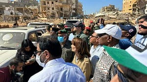 قام المبعوث الأممي إلى ليبيا “عبد الله باثيلي” يرافقه رئيس الحكومة المكلفة من رئيس اللجنة العليا للطوارئ والاستجابة السريعة “أسامة حماد” بجولة في أحياء ومناطق مدينة درنة المنكوبة.
