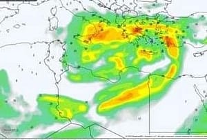 نبه المركز العربي للمناخ إلى أن اخر البيانات تشير الى احتمالية نشوء منخفض جوي وسط المتوسط محمل بأمطار غزيرة , ستتأثر دول جنوب اوروبا اولاً بهذا المنخفض ثم ستعبر جبهة هوائية باردة الاراضي الليبية واجزاء من الاراضي التونسية وسط الاسبوع مع مساء الاثنين وخلال يوم الثلاثاء , مما سيؤدي الى هطول امطار رعدية تغزر احياناً على طول الساحل الليبي الشمالي .