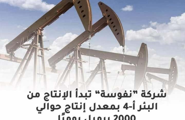 نجحت الفرق الفنية التابعة لشركة “ نفوسة للعمليات النفطية ” من رفع معدلات الإنتاج بعد بدء الإنتاج من البئر أ-4 بمعدل يتراوح من 1500 الى 2000 برميل يوميًا.