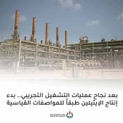 أعلنت المؤسسة الوطنية للنفط عن بداية إنتاج غاز الايثلين بعد نجاح عمليات التشغيل التجريبي للمصنع الواقع بمجمع رأس لانوف الصناعي.