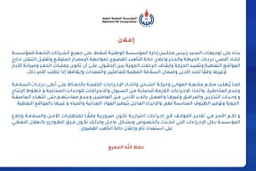 ومنحت المؤسسة للشركات مهمة تقدير الموقف لأي إجراءات احترازية تكون ضرورية وفقا لمتطلبات الأمن والسلامة، وإبلاغ المؤسسة بتك الإجراءات التي اتخذت بالخصوص وبشكل عاجل، مشددة على أن تكون فرق الطوارئ بالهلال النفطي على استعداد تام ، وإعلان حالة التأهب القصوى .