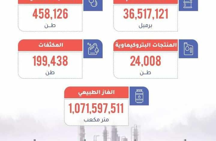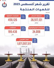 المؤسسة الوطنية للنفط تعلن عن إنتاج النفط ومشتقاته خلال شهر أغسطس الماضي.