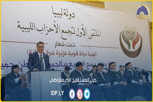 وعلى إثر ذلك تم تلاوة بيان باسم التجمع حول آخر المستجدات السياسية في ليبيا.