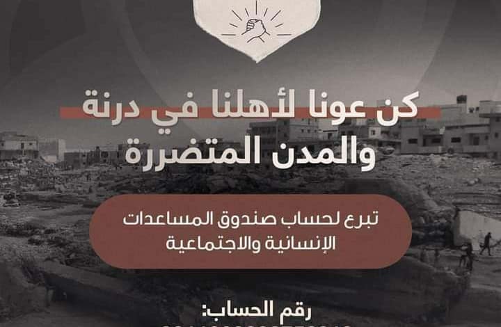 اعلن الاتحاد العام لغرف التجارة والصناعة والزراعة في ليبيا الثلاثاء عن انشاء صندوق المساعدات الإنسانية والاجتماعية لدعم مدينة درنة ومدن الجبل الأخضر المتضررة جراء الفيضانات التي اجتاحت المنطقة .