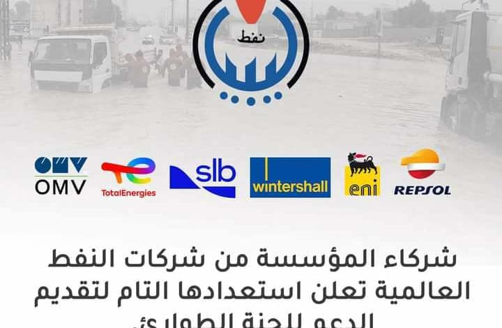 أبدت شركات النفط العالمية العاملة في قطاع النفط الليبي ( إيني، توتال، ريبسول ، وينترشيل ، شلمبرجير ) الاثنين استعدادها التام لتسخير كل إمكاناتها للمساهمة في توفير الاحتياجات وتقديم المساعدات الإنسانية لمدن المنطقة الشرقية المتضررة من إعصار دانيال.