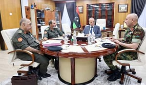 التقى النائب بالمجلس الرئاسي بصفته القائد الأعلى للجيش ” عبدالله اللافي ” الثلاثاء رئيس الأركان العامة فريق أول ركن ” محمد الحداد “، رفقة آمر ركن حرس الحدود اللواء ” نوري شراطة “، ومدير إدارة العمليات بالجيش الليبي اللواء ” عبدالفتاح البلوق ” ، اللذان استعرضا أمامه الخطوات المتخذة لتأمين الحدود، وفق رؤية إستراتيجية محكمة في ظل الأحداث المتسارعة التي تشهدها دولتي السودان والنيجر.