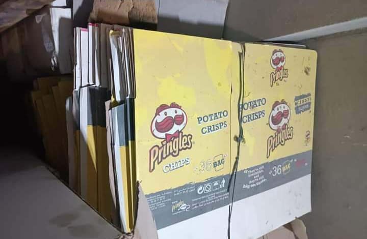 ونشر المركز صورا للمنتجات المزيفة التي ينتجها المصنع من بينها أشهر وأقدم العلامات التجارية الأمريكية “برينجلز” و”ليز”.