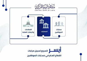 ذكر مصرف ليبيا المركزي أنه في إطار إستراتيجيته لتحسين قطاع الدفع الالكتروني تم إطلاق أولى التجارب العملية بمشروع “أيسر” الذي يُعنى بتسريع تسييل مرتبات القطاع العام في حسابات الموظفين.