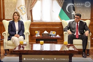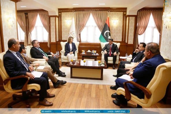 وأوضح حساب وزارة الخارجية عبر شبكة المعلومات الدولية أن الوزيرة ناقشت مع رئيس ديوان المحاسبة رؤية وخطة عمل الوزارة في ترشيد الإنفاق وتنظيم عدد السفارات الليبية بالخارج، وتنظيم إجراءات ترشيح الموظفين الدبلوماسيين للعمل في الخارج، وملف الملاك للسفارات والبعثات الليبية بالخارج.