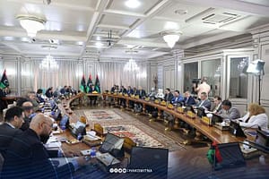 وأضاف الدبيبة خلال كلمة له في اجتماع مجلس الوزراء الذي عقد الخميس أن مجلس الوزراء فخور بموقف الليبيين الذي أعلنوه بوضوح بأن القضية الفلسطينية تسري في عروقه وأنه متمسك بثوابته وهويته.