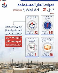 وأضافت المؤسسة أن الشركة العامة للكهرباء استهلكت 951 مليون قدم مكعب والمؤسسة الوطنية 123 مليون قدم ومجمع الحديد والصلب ومصانع صغيرة أخرى استهلكت 50 مليون قدم إضافة إلى 6 مليون قدم استهلكتها مصانع الأسمنت خلال نفس الفترة.