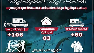 27 وفاة و106 إصابة جراء الاشتباكات المسلحة في طرابلس.