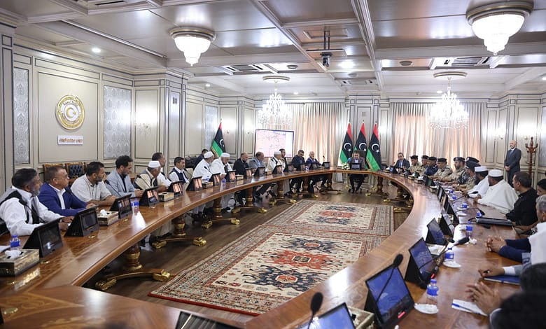 التقى رئيس الحكومة “عبد الحميد الدبيبة” وفداً من أعيان وعمداء بلديات الجبل الغربي لبحث الاعتراضات الحاصلة على قرار وزارة الداخلية بشأن إعادة تنظيم مديريات الأمن بالمنطقة.