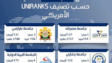تحصلت جامعة مصراتة على الترتيب الأول محلياً بحسب التصنيف الأمريكي العالمي UNIRANKS” ” من بين جامعات ومؤسســـات التعليم العـالي الليبية…