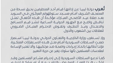 ##ليبيا تطالب السلطات السويدية اتخاذ إجراءات واضحة حيال مرتكبي جريمة إحراق المصحف الشريف.